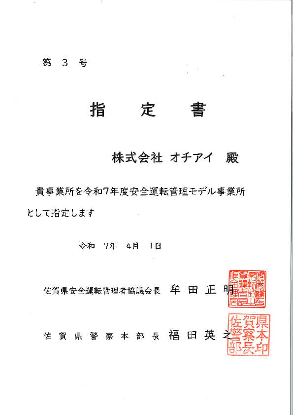 ”令和7年度 佐賀南地区の安全運転管理モデル事業所”に3つの事業所が指定されるのですが、、、