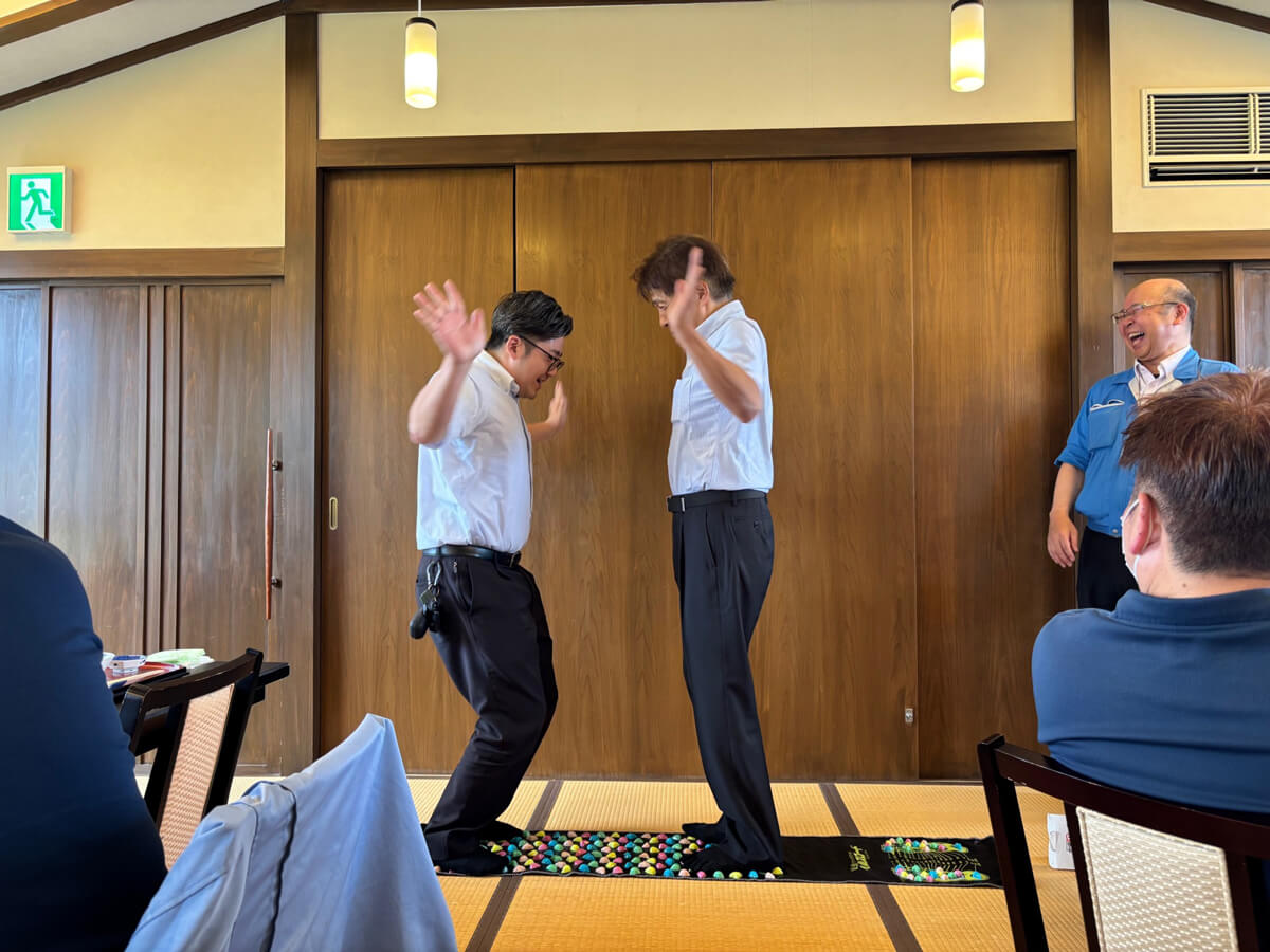 手押し相撲は、足つぼマットの上での戦い❗❗🤣上司や先輩でも無礼講🤭🤭