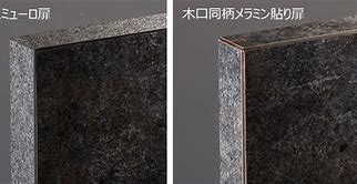 まるで銘木のようなリアルな木肌感をもつ木目柄、風化したコンクリートや金属の表情を細部まで再現した柄など、高意匠タイプのメラミン化粧板を表面に使用しています。